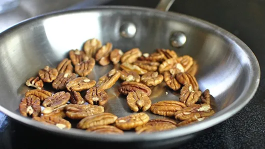 Toast pecan halves in a dry skillet over medium heat until lightly golden and fragrant.
